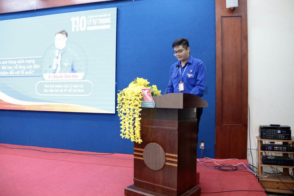 Tại chương trình, các bạn đoàn viên thanh niên đã thực hiện nghi thức dâng hoa trước tượng đài anh hùng Lý Tự Trọng, khánh thành công trình thanh niên bức tường kỹ năng và có dịp lắng nghe tham luận đến từ các đồng chí nguyên lãnh đạo Thành ủy, Thành Đoàn, các chuyên gia, nhà nghiên cứu, các đồng chí đại diện các cơ sở Đoàn. Trong đó, Đoàn Thanh niên Học viện Cán bộ Thành phố Hồ Chí Minh vinh dự được trình bày tham luận về Tinh thần anh hùng cách mạng Lý Tự Trọng – “Bài học về lòng can đảm và trách nhiệm đối với Tổ quốc” cho đoàn viên, thanh niên Việt Nam hiện nay do đồng chí Nguyễn Công Khải – Thành viên CLB Lý luận trẻ Thành Đoàn, Phó Chủ nhiệm Câu lạc bộ Lý luận trẻ Học viện Cán bộ Thành phố Hồ Chí Minh ![]()